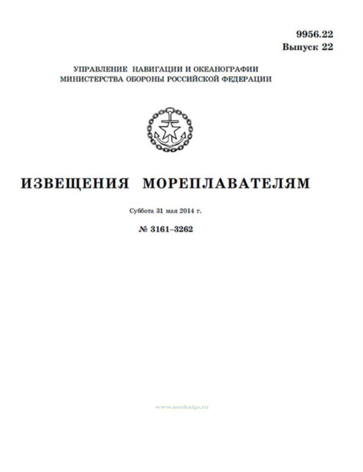Извещения мореплавателям. Выпуск 22. № 3161-3262 (от 31 мая 2014 г.) Адм. 9956.22