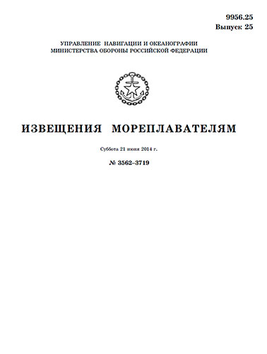 Извещения мореплавателям издаются Управлением навигации и океанографии Минобороны России еженедельными выпусками.