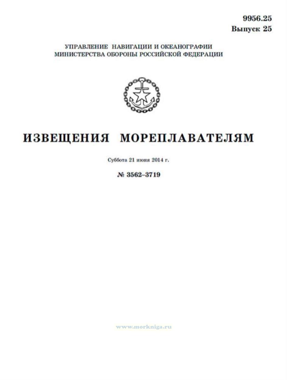 Извещения мореплавателям. Выпуск 25. № 3562-3719 (от 21 июня 2014 г.) Адм. 9956.25