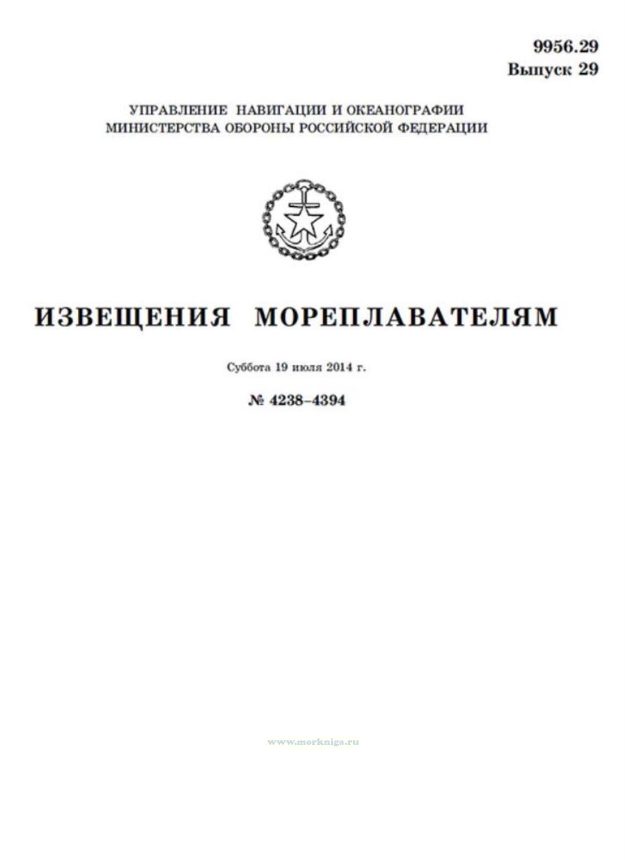 Извещения мореплавателям. Выпуск 29. № 4238-4394 (от 19 июля 2014 г.) Адм. 9956.29