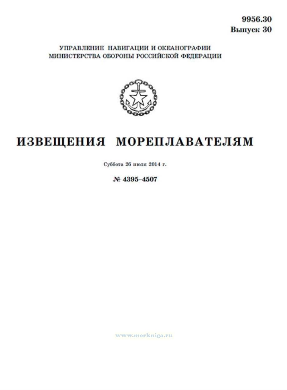 Извещения мореплавателям. Выпуск 30. № 4395-4507 (от 26 июля 2014 г.) Адм. 9956.30