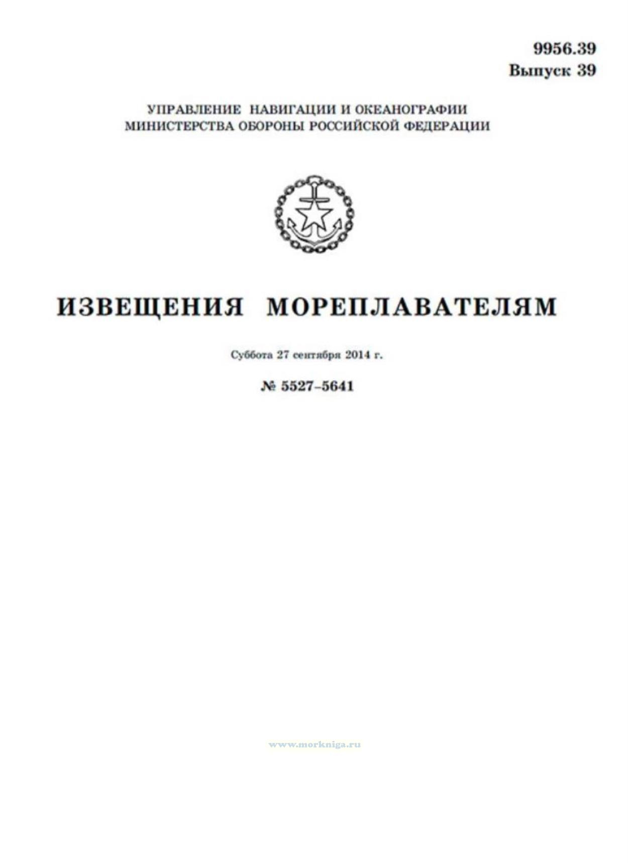 Извещения мореплавателям. Выпуск 39. № 5527-5641 (от 27 сентября 2014 г.) Адм. 9956.39