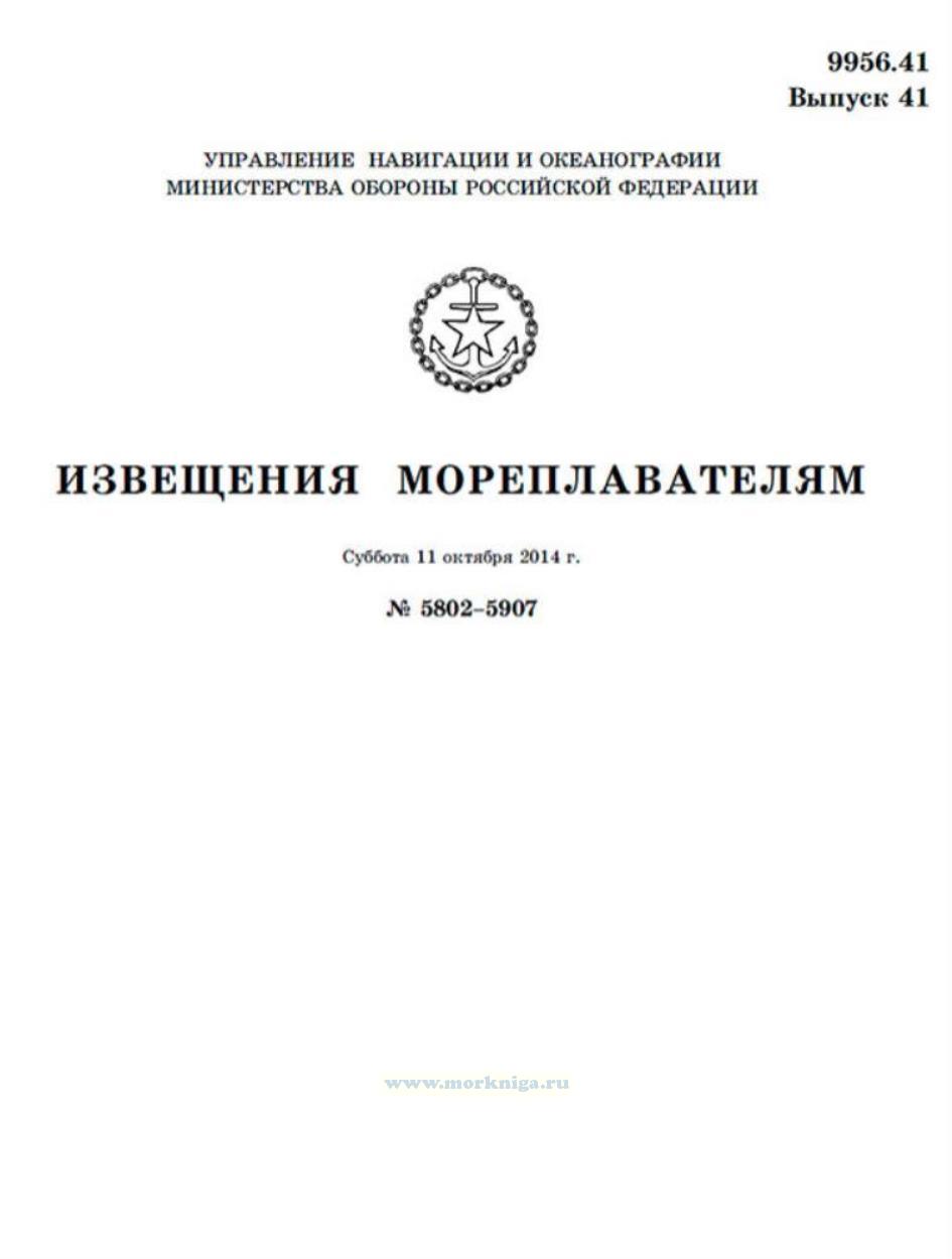 Извещения мореплавателям. Выпуск 41. № 5802-5907 (от 11 октября 2014 г.) Адм. 9956.41