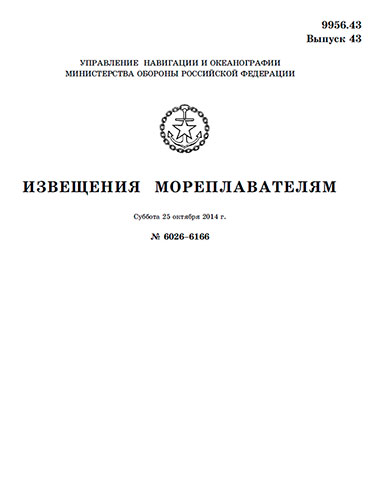 Извещения мореплавателям издаются Управлением навигации и океанографии Минобороны России еженедельными выпусками.