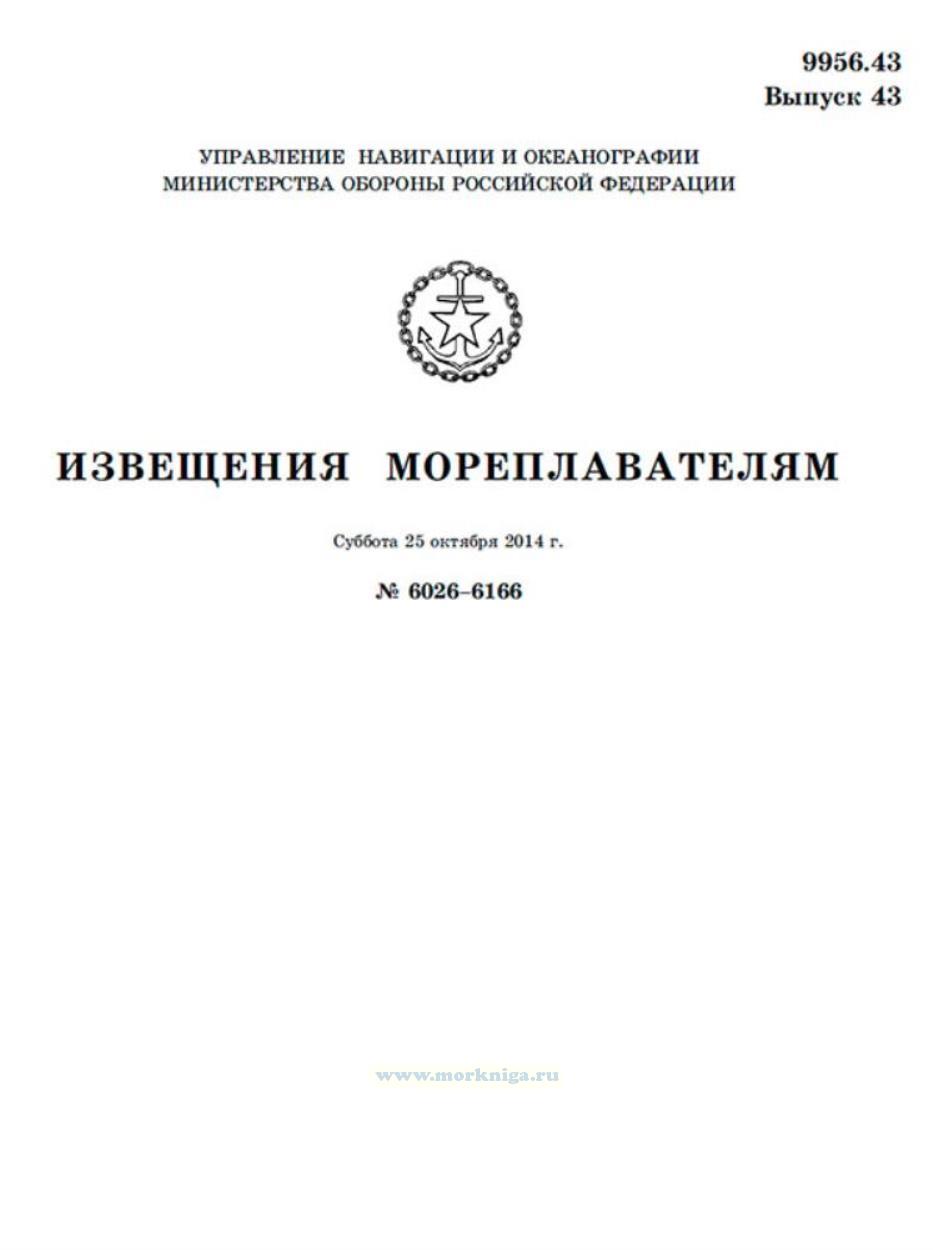 Извещения мореплавателям. Выпуск 43. № 6026-6166 (от 25 октября 2014 г.) Адм. 9956.43