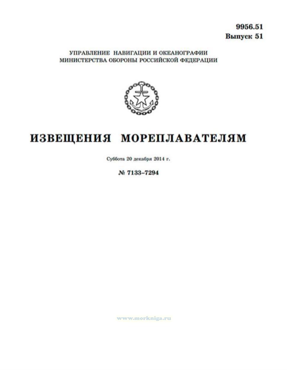 • Извещения мореплавателям. Выпуск 51. № 7133-7294 (от 20 декабря 2014 г.) Адм. 9956.51