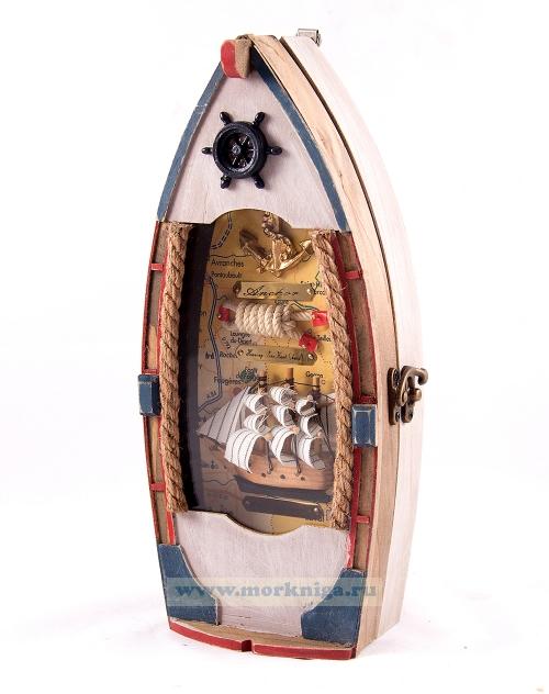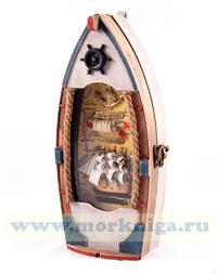 Коллаж-ключница "Рыбацкое судно" 30*13см