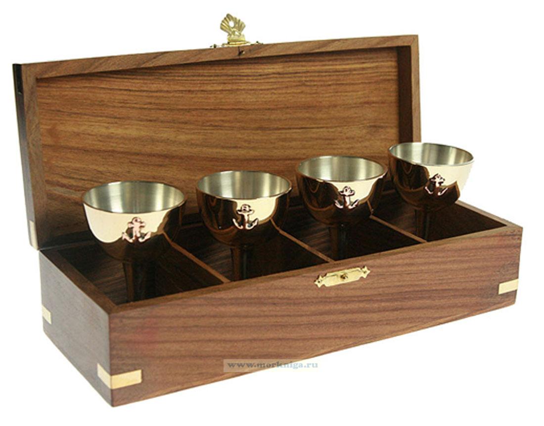 Набор сувенирный для крепких напитков "Якорь" в дерев. футляре: 4 рюмки 8см