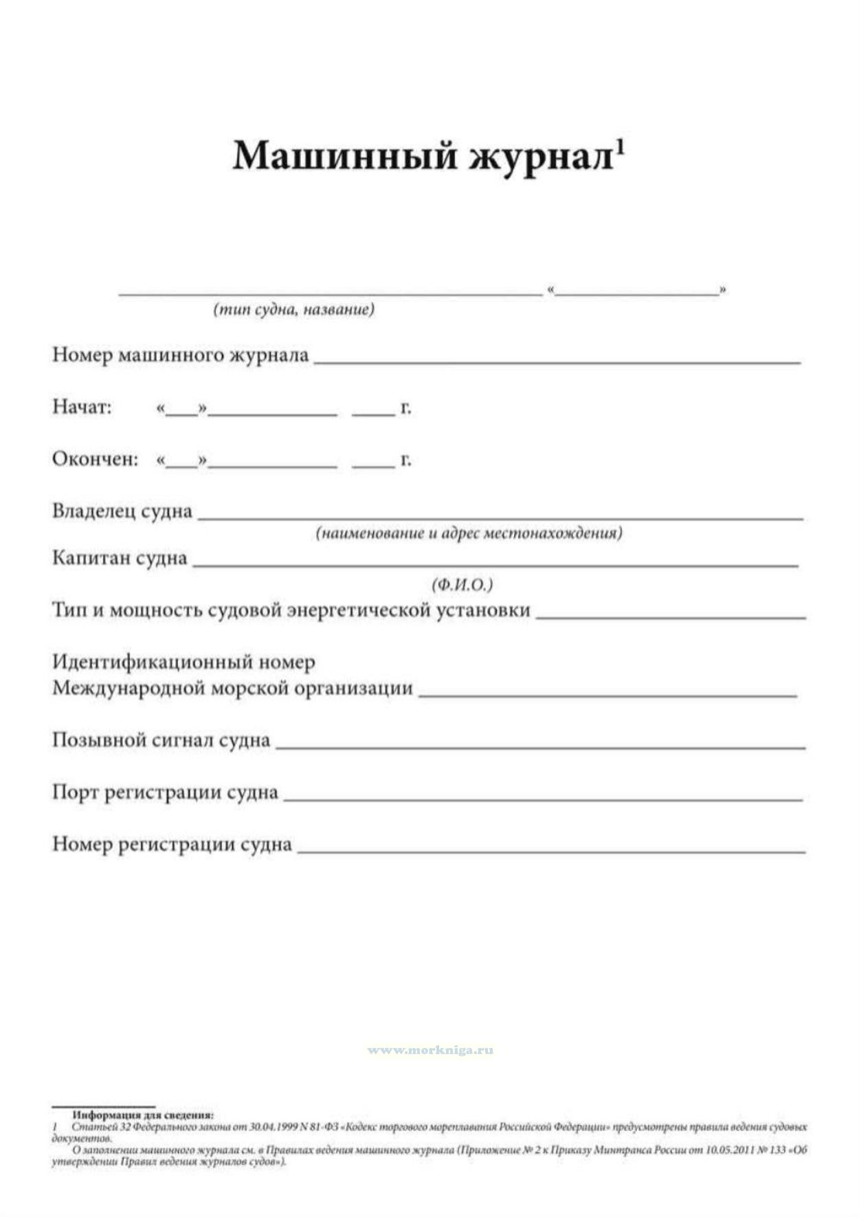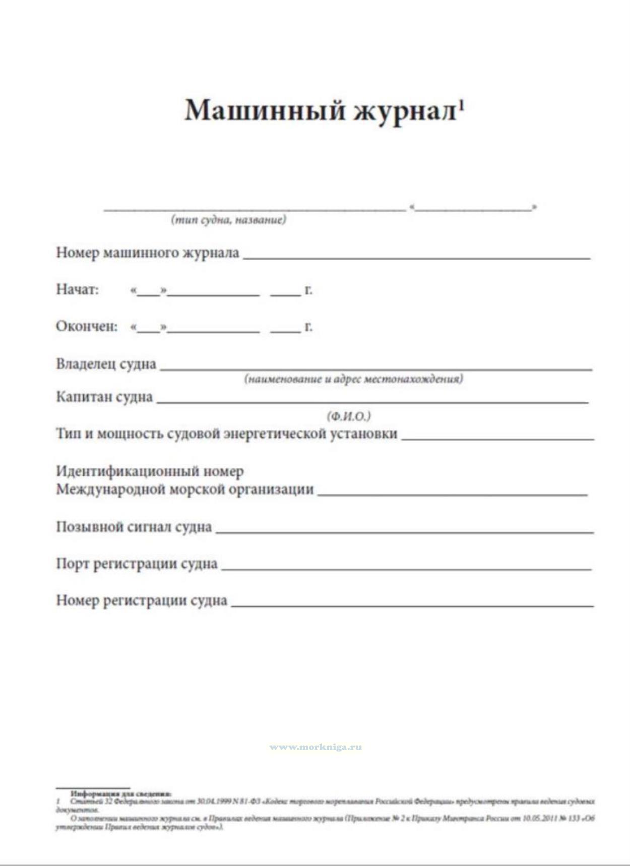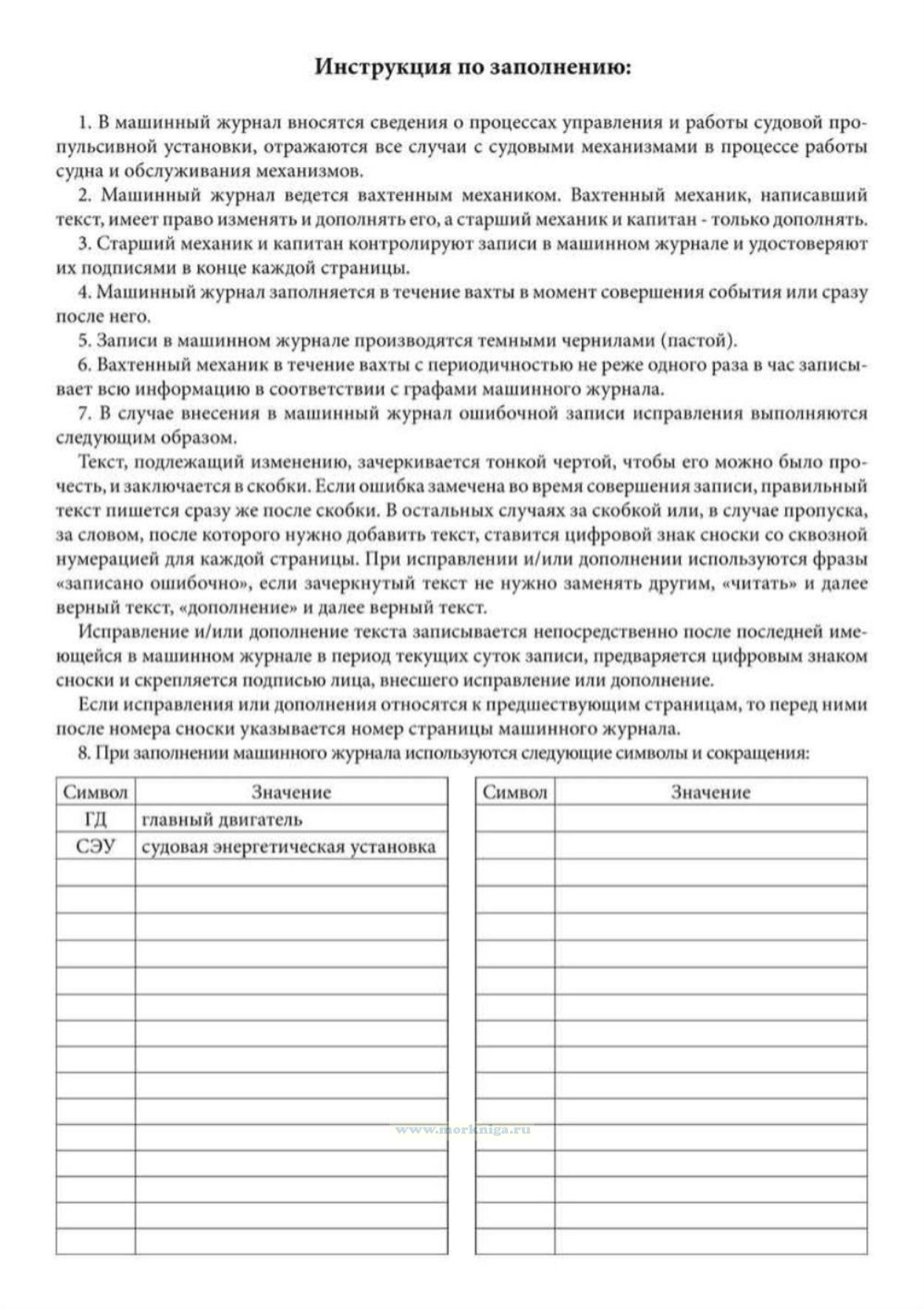 О заполнении машинного журнала см. в Правилах ведения машинного журнала (Приложение N 2 к Приказу Минтранса России от 10.05.2011 N 133 "Об утверждении Правил ведения журналов судов").