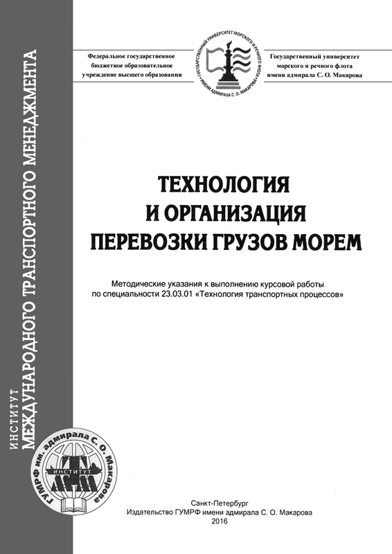 Методические указания к выполнению курсовой работы «Технология и организация перевозки грузов морем», подготовленные канд. воен. наук Н. Б. Глебовым, канд. техн. наук проф. А. Е. Слицаном, доц. А. В. Грачевым, рассмотрены и рекомендованы к изданию на заседании кафедры технологии и организации перевозок. Протокол заседания кафедры № 9 от 14 апреля 2015 г.