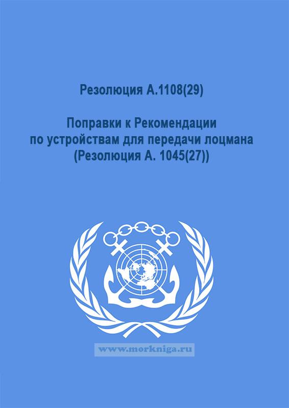 Резолюция А.1108(29) Поправки к Рекомендации по устройствам для передачи лоцмана (Резолюция А. 1045(27)) включена в Сборник № 54 резолюций ИМО. Collection No.54 of IMO Resolutions.