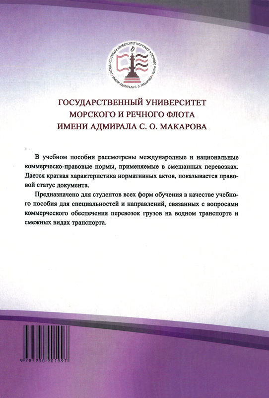 В учебном пособии рассмотрены международные и национальные коммерческо-правовые нормы, применяемые в смешанных перевозках. Дается краткая характеристика нормативных актов, показывается правовой статус документа.