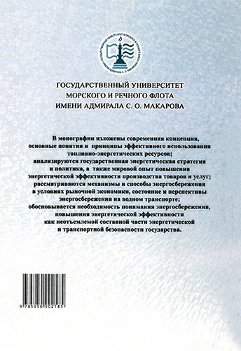 В монографии изложены современная концепция, основные понятия и принципы эффективного использования топливно-энергетических ресурсов; анализируются государственная энергетическая стратегия и политика, а также мировой опыт повышения энергетической эффективности производства товаров и услуг; рассматриваются механизмы и способы энергосбережения в условиях рыночной экономики, состояние и перспективы энергосбережения на водном транспорте; обосновывается необходимость понимания энергосбережения, повышения энергетической эффективности как неотъемлемой составной части энергетической и транспортной безопасности государства.