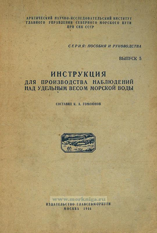 Настоящая Инструкция детально излагает методику определения удельного, веса морской воды и первичной обработки соответствующих наблюдений. В инструкции подробно описаны ареометры и даны все указания, необходимые для правильного ухода за ними.