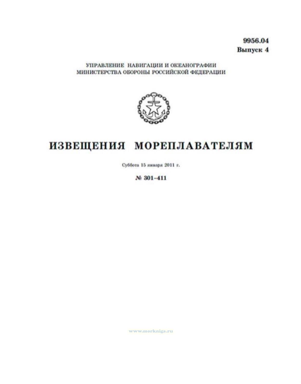 Извещения мореплавателям. Выпуск 4. № 301-411 (от 15 января 2011 г.) Адм. 9956.04