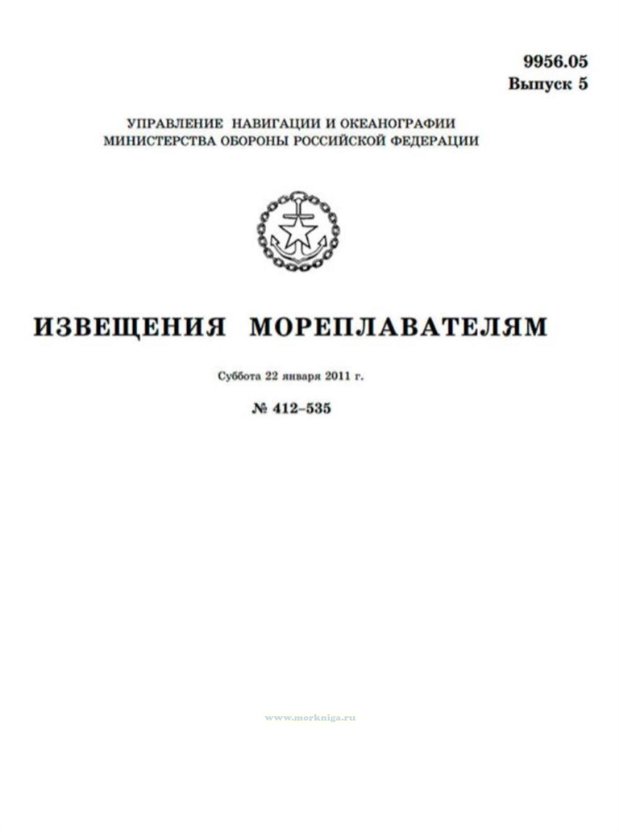 Извещения мореплавателям. Выпуск 5. № 412-535 (от 22 января 2011 г.) Адм. 9956.05