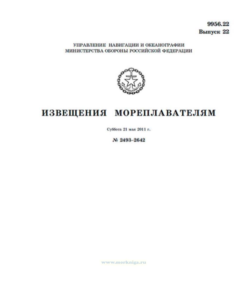 Извещения мореплавателям. Выпуск 22. № 2493-2642 (от 21 мая 2011 г.) Адм. 9956.22