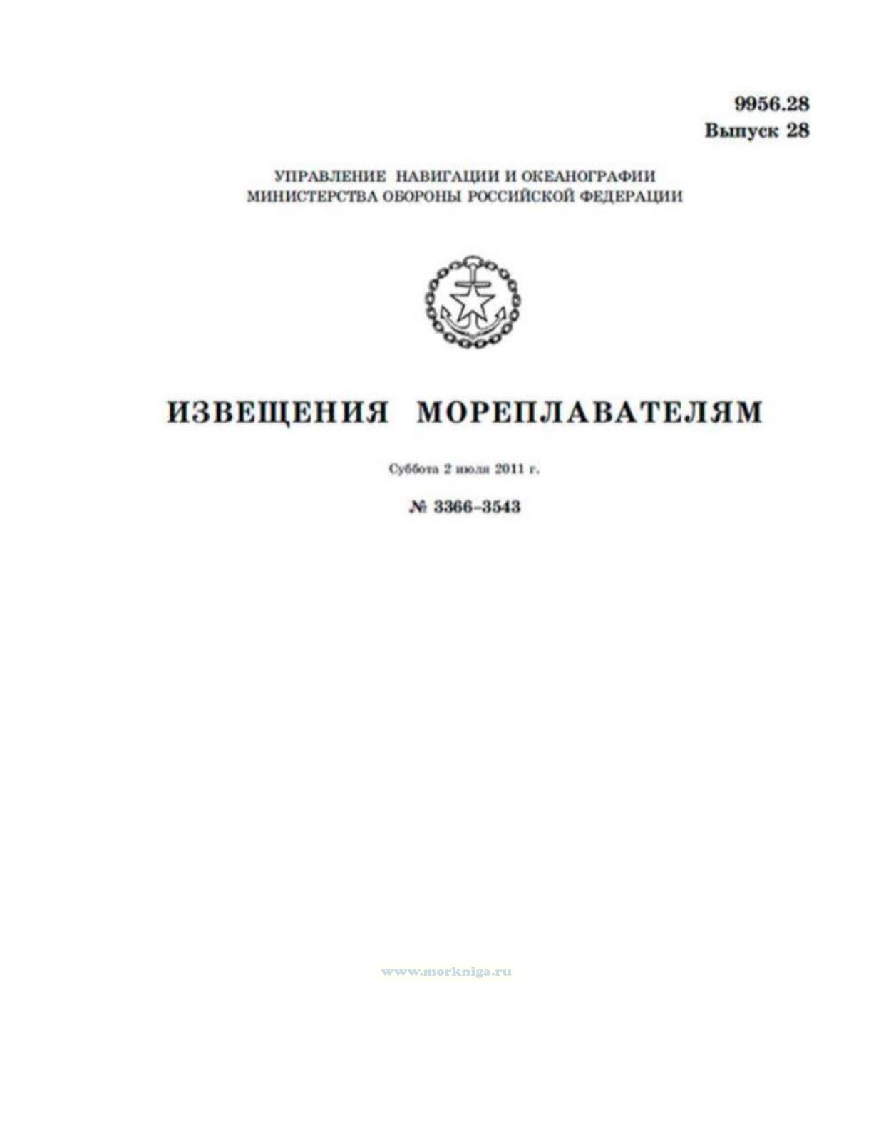 Извещения мореплавателям. Выпуск 28. № 3366-3543 (от 2 июля 2011 г.) Адм. 9956.28