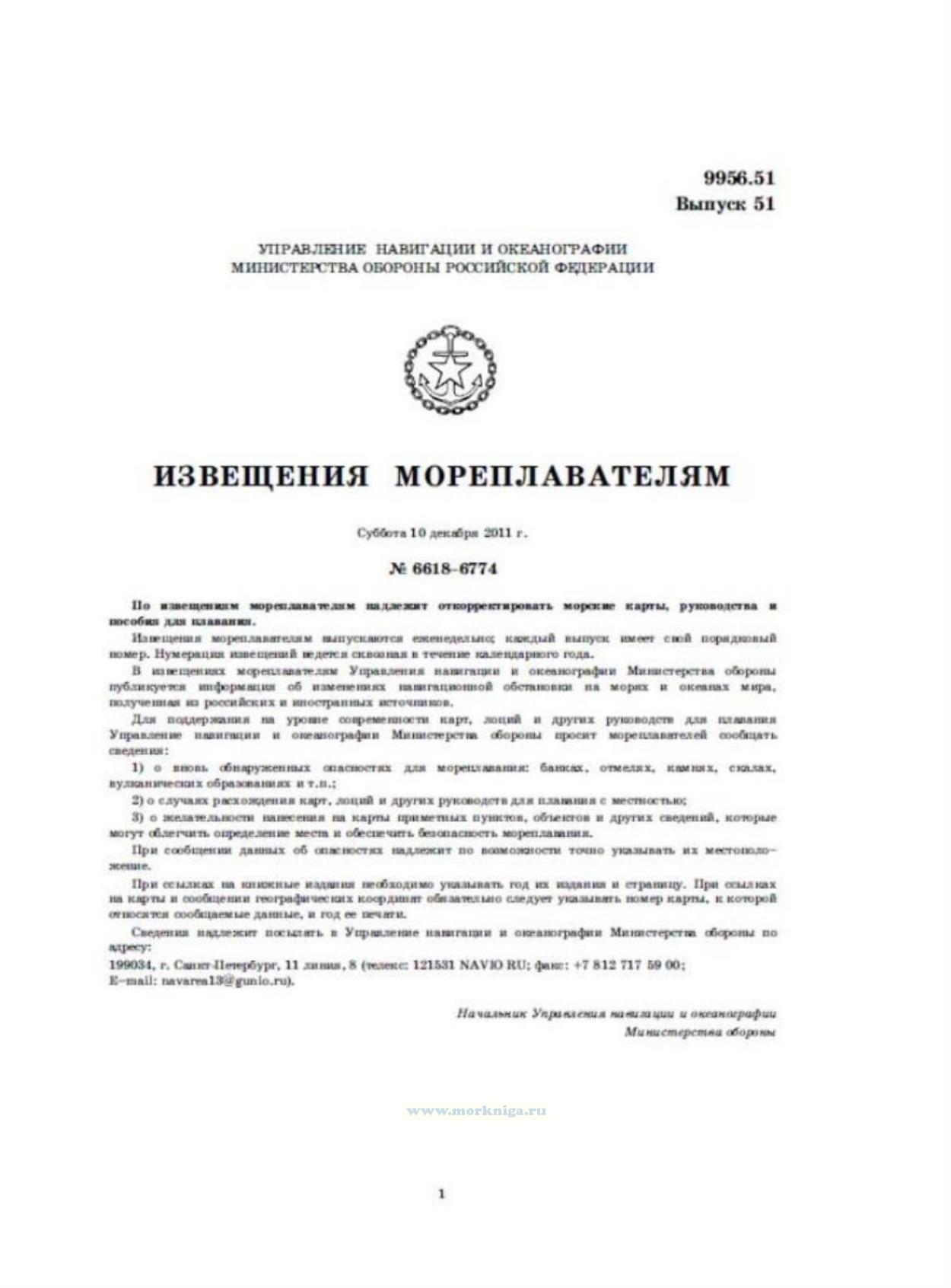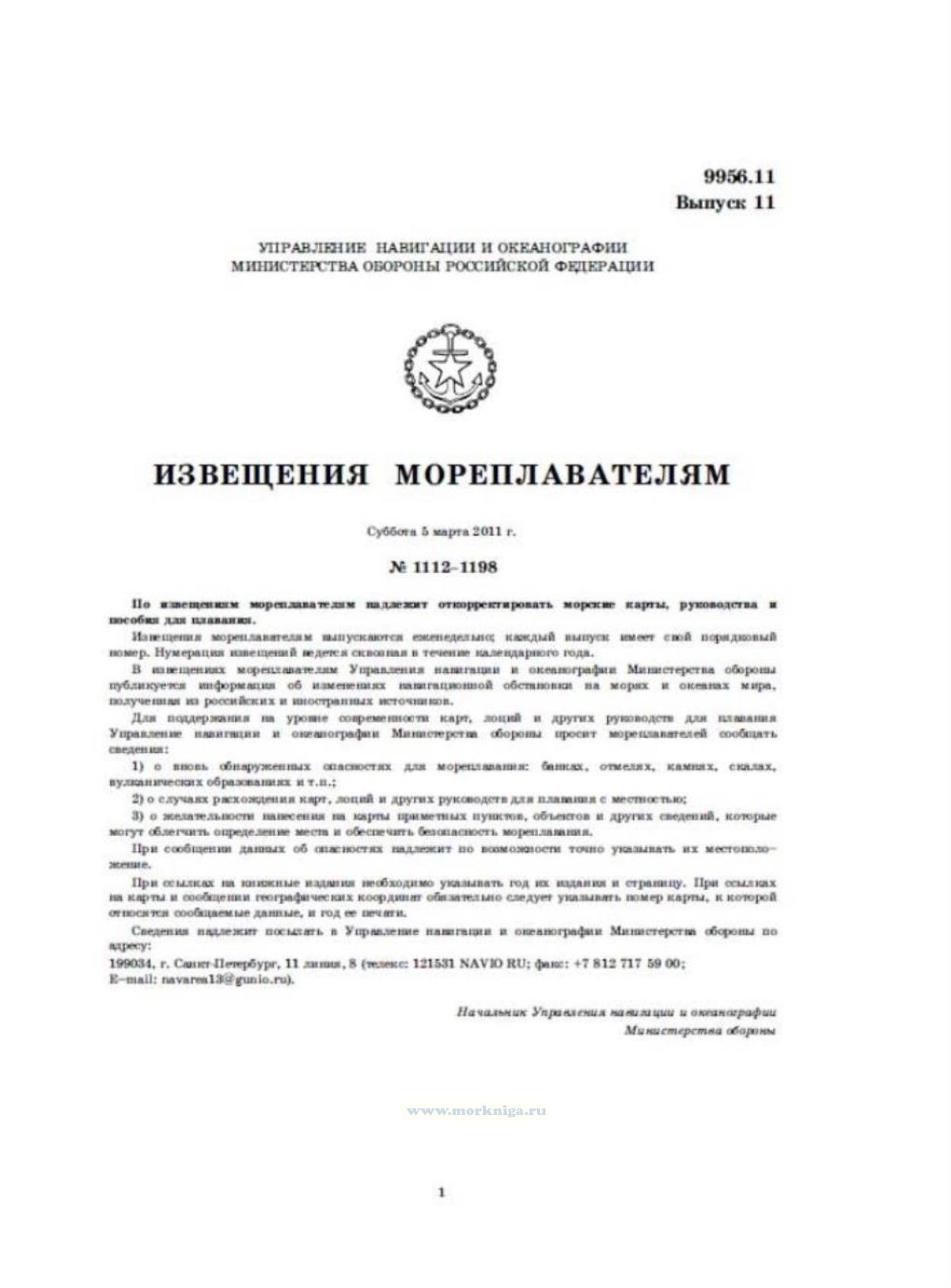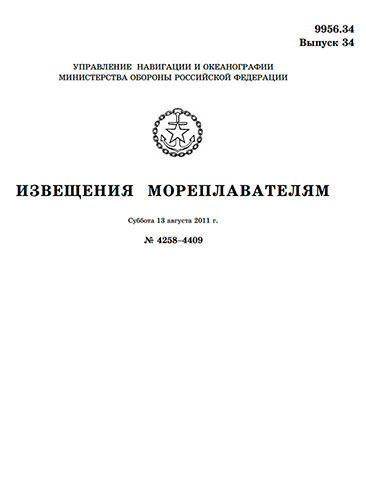 Извещения мореплавателям издаются Управлением навигации и океанографии Минобороны России еженедельными выпусками.