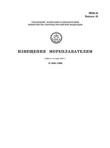 Извещения мореплавателям. Выпуск 41. № 5041-5206 (от 1 октября 2011 г.) Адм. 9956.41