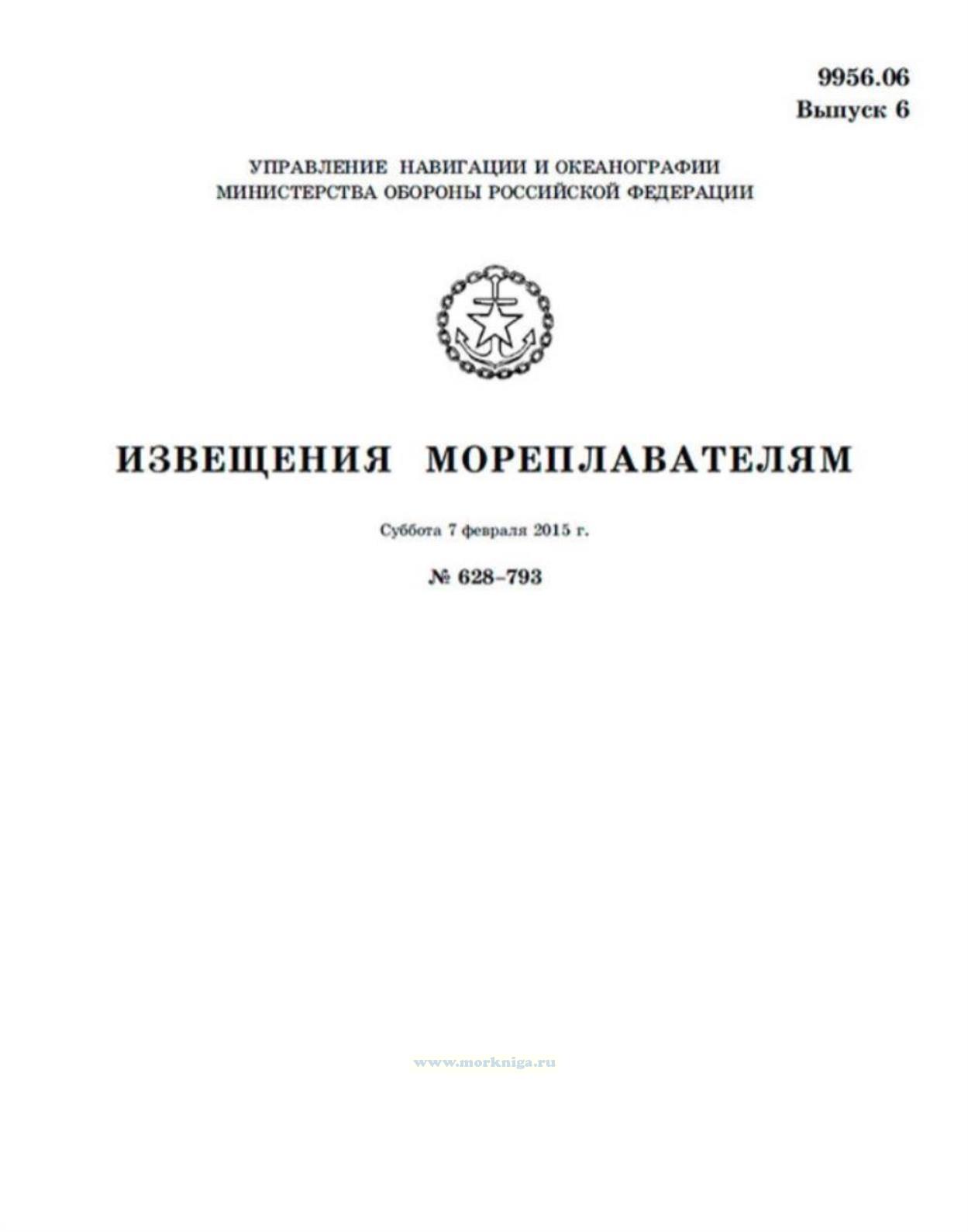 Извещения мореплавателям. Выпуск 6. № 628-793 (от 7 февраля 2015 г.) Адм. 9956.06