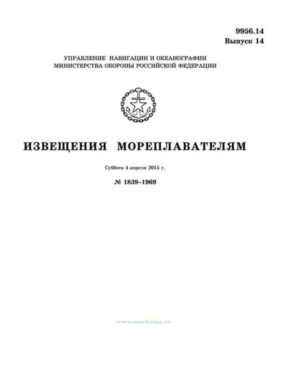 Извещения мореплавателям. Выпуск 14. № 1839-1969 (от 4 апреля 2015 г.) Адм. 9956.14