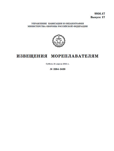 Извещения мореплавателям. Выпуск 17. № 2264-2420 (от 25 апреля 2015 г.) Адм. 9956.17