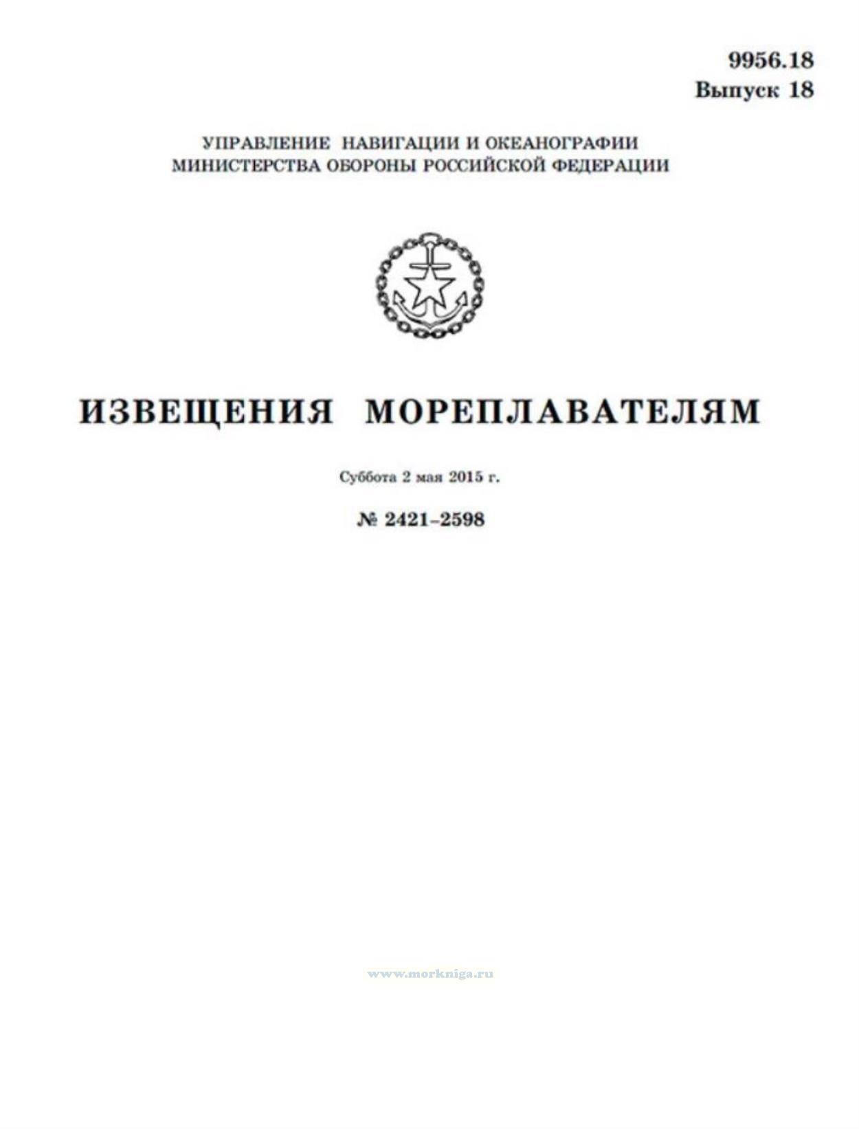 Извещения мореплавателям. Выпуск 18. № 2421-2598 (от 2 мая 2015 г.) Адм. 9956.18