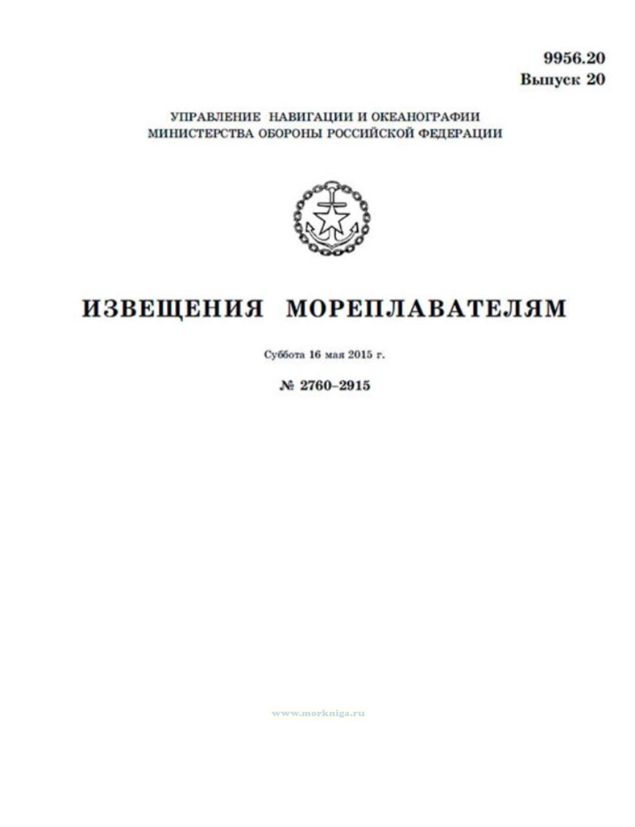 Извещения мореплавателям. Выпуск 20. № 2760-2915 (от 16 мая 2015 г.) Адм. 9956.20