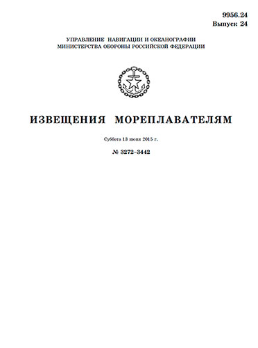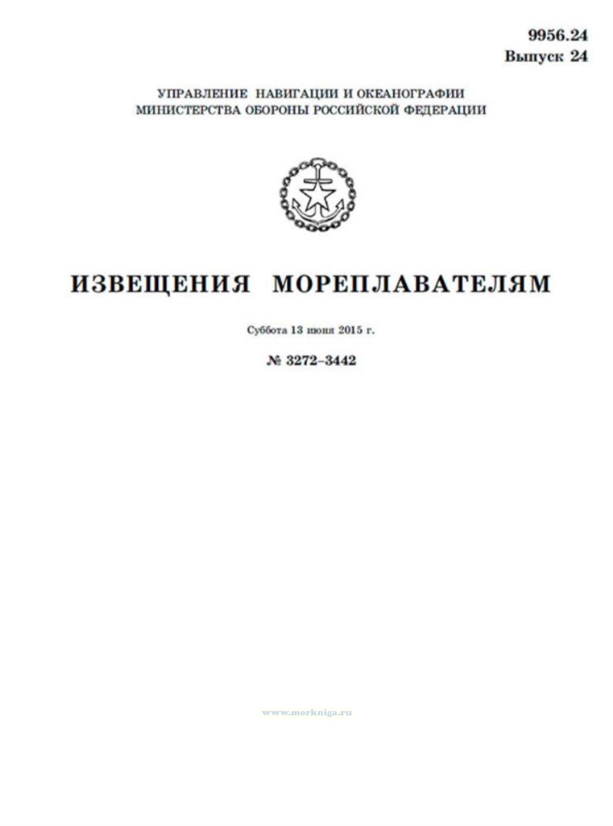 Извещения мореплавателям. Выпуск 24. № 3272-3442 (от 13 июня 2015 г.) Адм. 9956.24