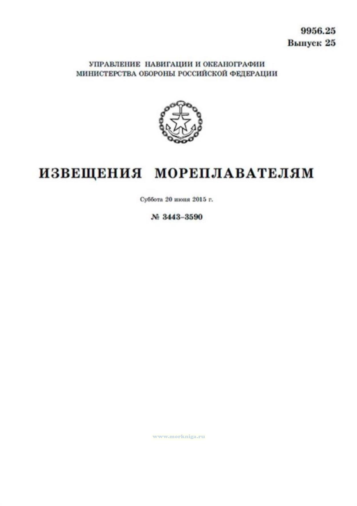 Извещения мореплавателям. Выпуск 25. № 3443-3590 (от 20 июня 2015 г.) Адм. 9956.25