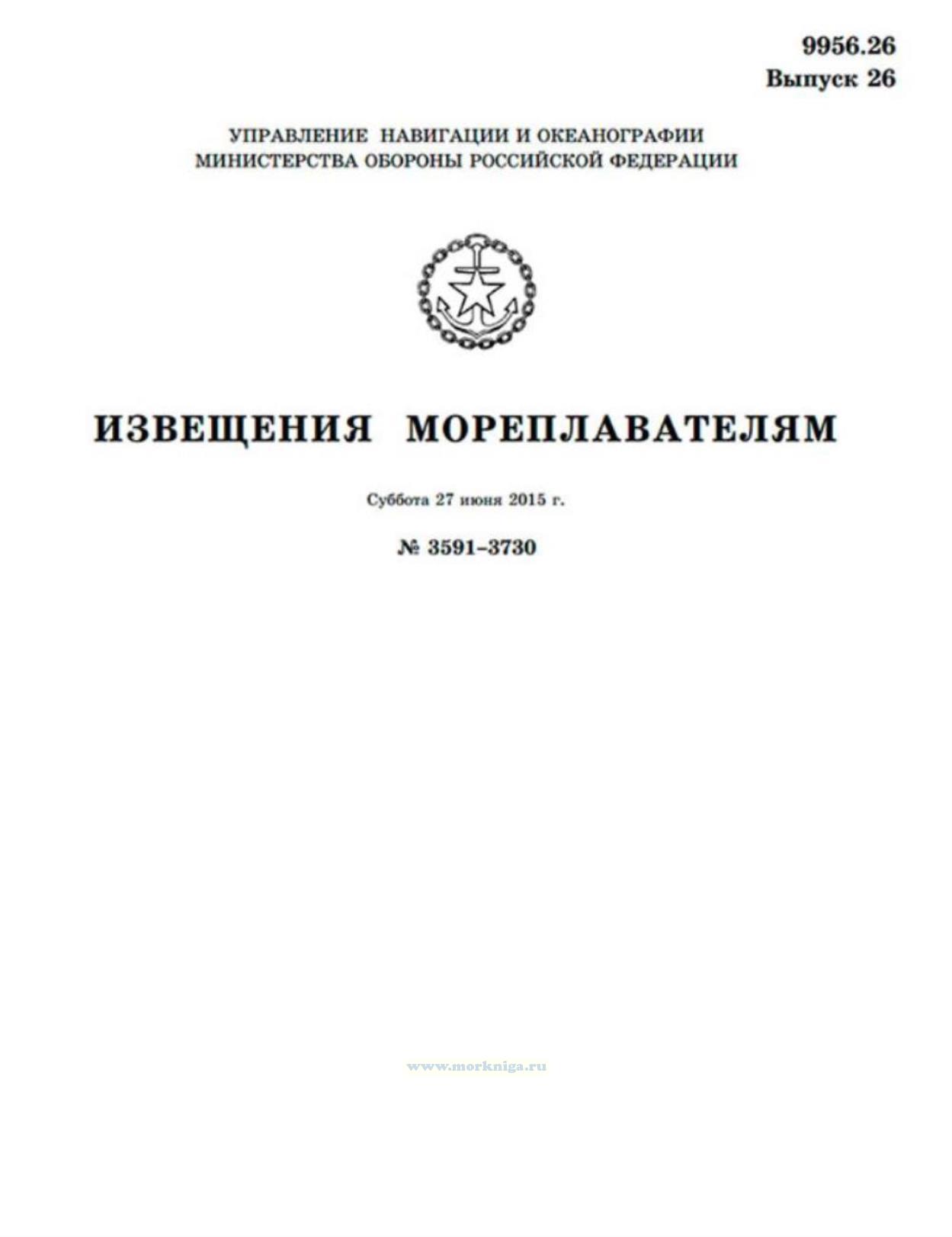 Извещения мореплавателям. Выпуск 26. № 3591-3730 (от 27 июня 2015 г.) Адм. 9956.26