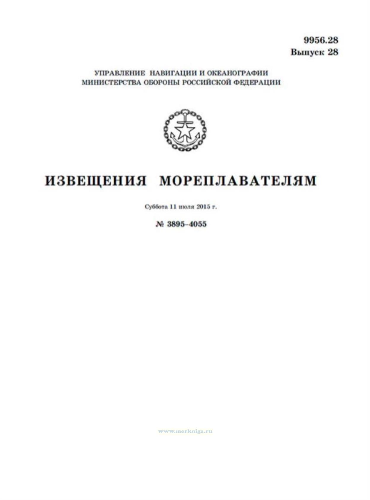 Извещения мореплавателям. Выпуск 28. № 3895-4055 (от 11 июля 2015 г.) Адм. 9956.28