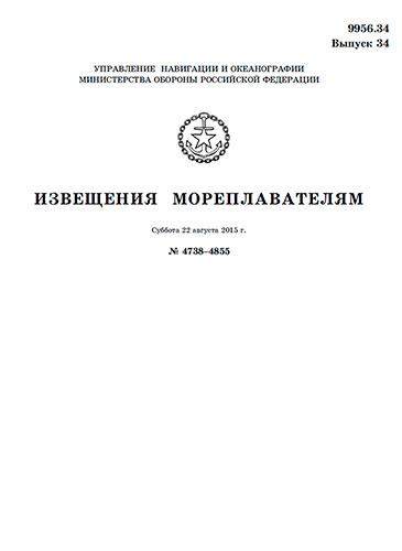 Извещения мореплавателям издаются Управлением навигации и океанографии Минобороны России еженедельными выпусками.