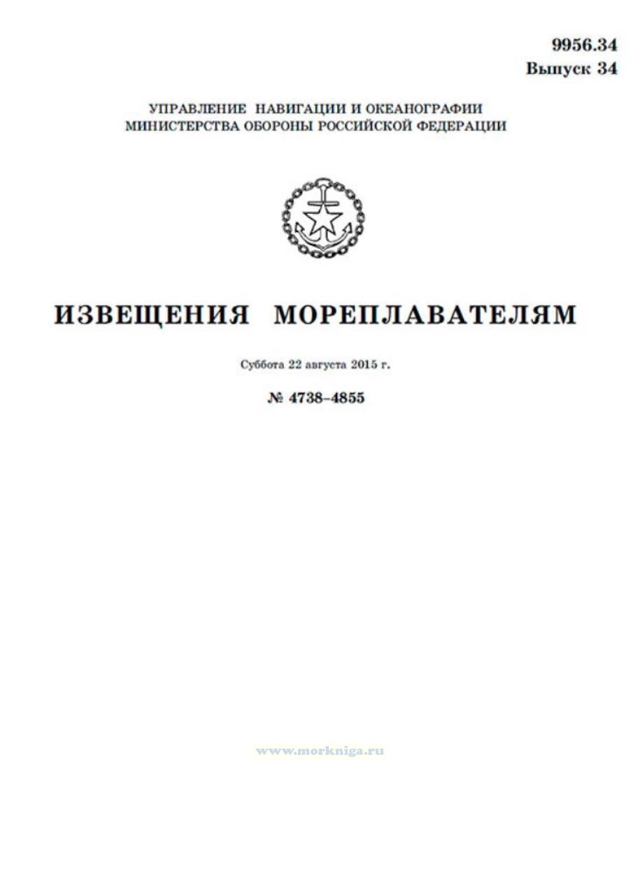 Извещения мореплавателям. Выпуск 34. № 4738-4855 (от 22 августа 2015 г.) Адм. 9956.34