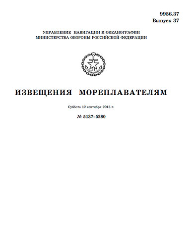 Извещения мореплавателям. Выпуск 37. № 5137-5280 (от 12 сентября 2015 г.) Адм. 9956.37