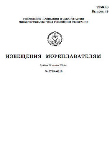 Извещения мореплавателям издаются Управлением навигации и океанографии Минобороны России еженедельными выпусками.