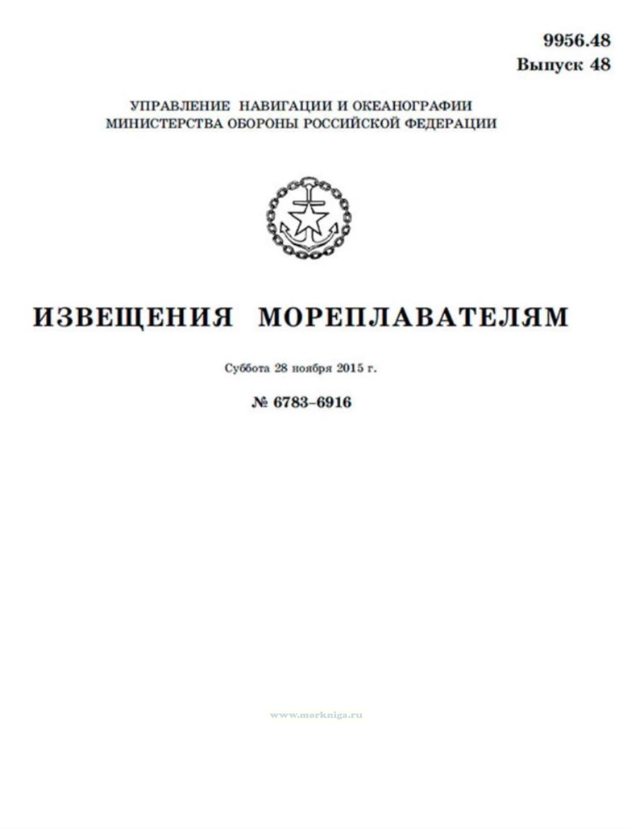 Извещения мореплавателям. Выпуск 48. № 6783-6916 (от 28 ноября 2015 г.) Адм. 9956.48