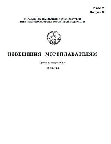 Извещения мореплавателям. Выпуск 2. № 26-188 (от 12 января 2013 г.) Адм. 9956.02