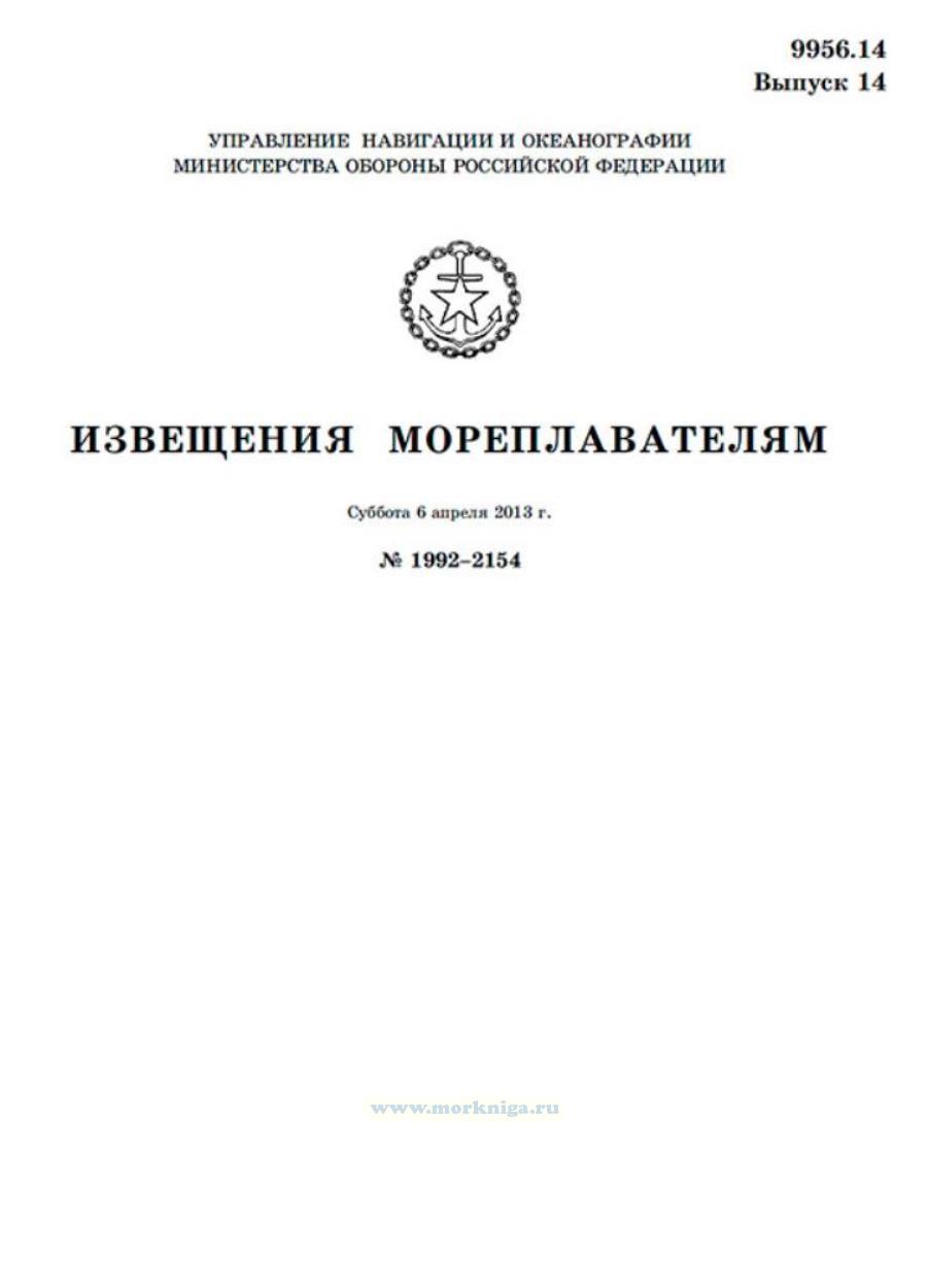 Извещения мореплавателям. Выпуск 14. № 1992-2154 (от 6 апреля 2013 г.) Адм. 9956.14