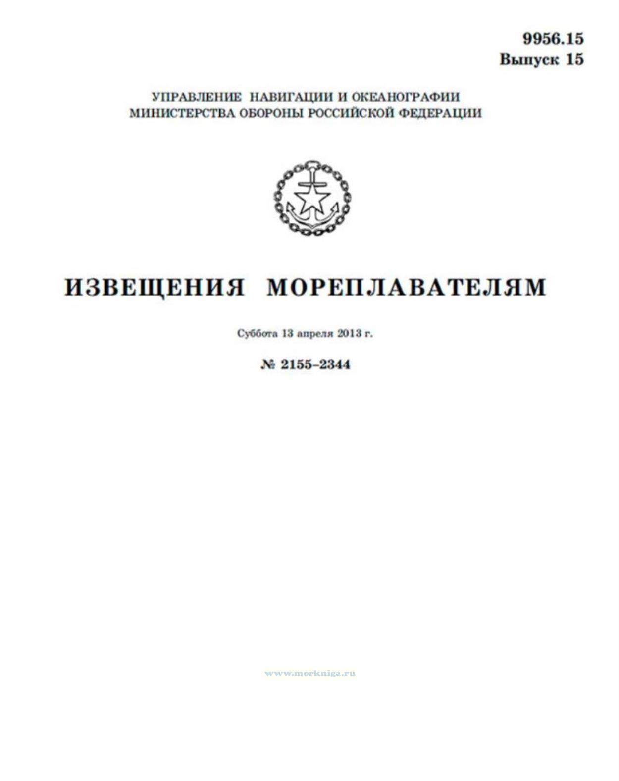 Извещения мореплавателям. Выпуск 15. № 2155-2344 (от 13 апреля 2013 г.) Адм. 9956.15