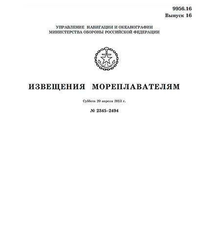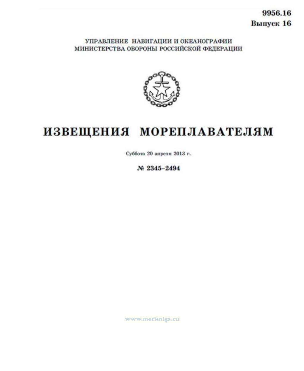 Извещения мореплавателям. Выпуск 16. № 2345-2494 (от 20 апреля 2013 г.) Адм. 9956.16