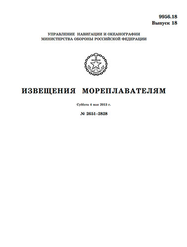 Извещения мореплавателям. Выпуск 18. № 2651-2828 (от 4 мая 2013 г.) Адм. 9956.18