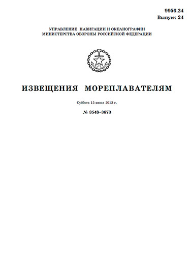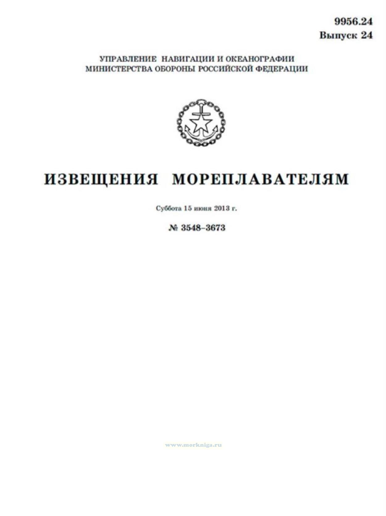 Извещения мореплавателям. Выпуск 24. № 3548-3673 (от 15 июня 2013 г.) Адм. 9956.24