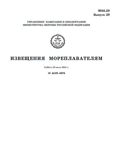 Извещения мореплавателям издаются Управлением навигации и океанографии Минобороны России еженедельными выпусками.