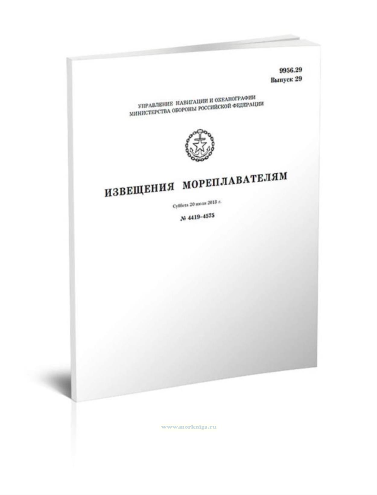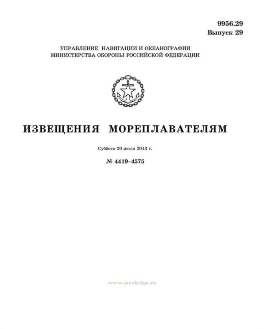 Извещения мореплавателям. Выпуск 29. № 4419-4575 (от 20 июля 2013 г.) Адм. 9956.29