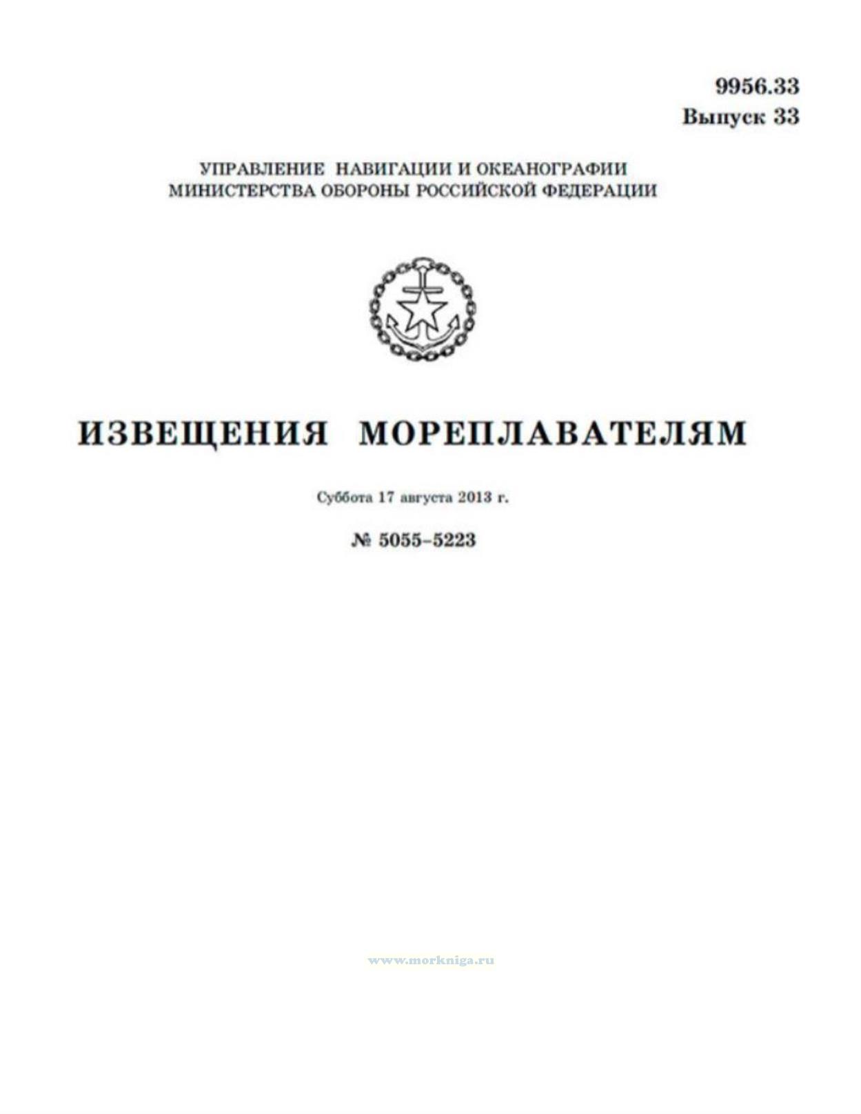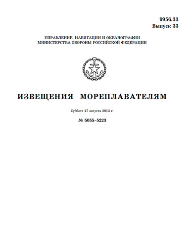 Извещения мореплавателям. Выпуск 33. № 5055-5223 (от 17 августа 2013 г.) Адм. 9956.33