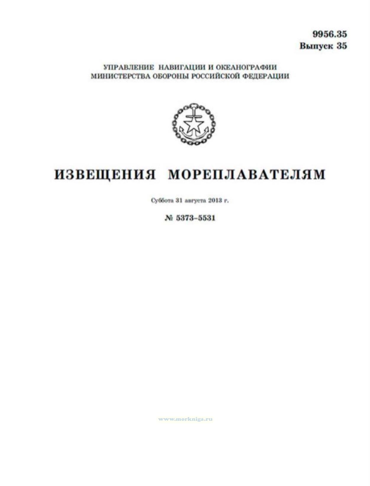 Извещения мореплавателям. Выпуск 35. № 5373-5531 (от 31 августа 2013 г.) Адм. 9956.35