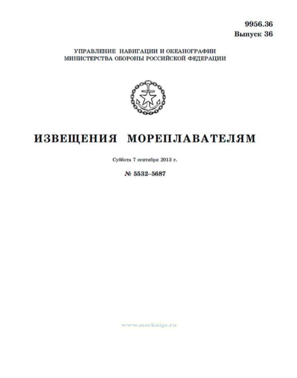 Извещения мореплавателям. Выпуск 36. № 5532-5687 (от 7 сентября 2013 г.) Адм. 9956.36