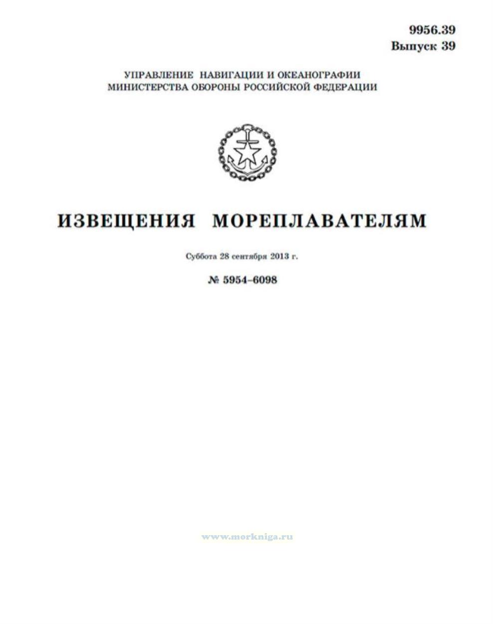 Извещения мореплавателям. Выпуск 39. № 5954-6098 (от 28 сентября 2013 г.) Адм. 9956.39